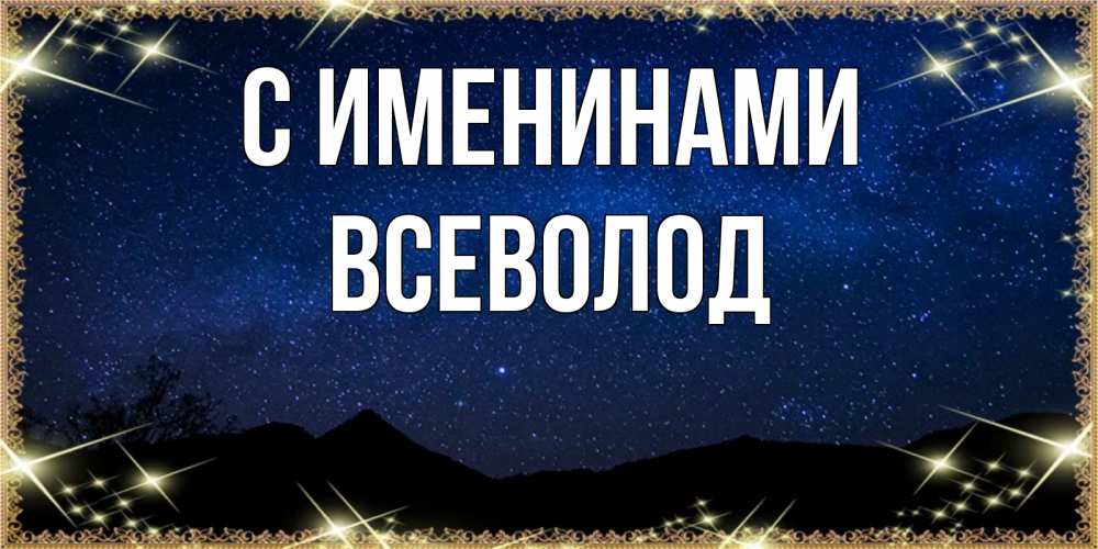 Открытка С именинами Всеволод. небо на фоне гор. млечный путь