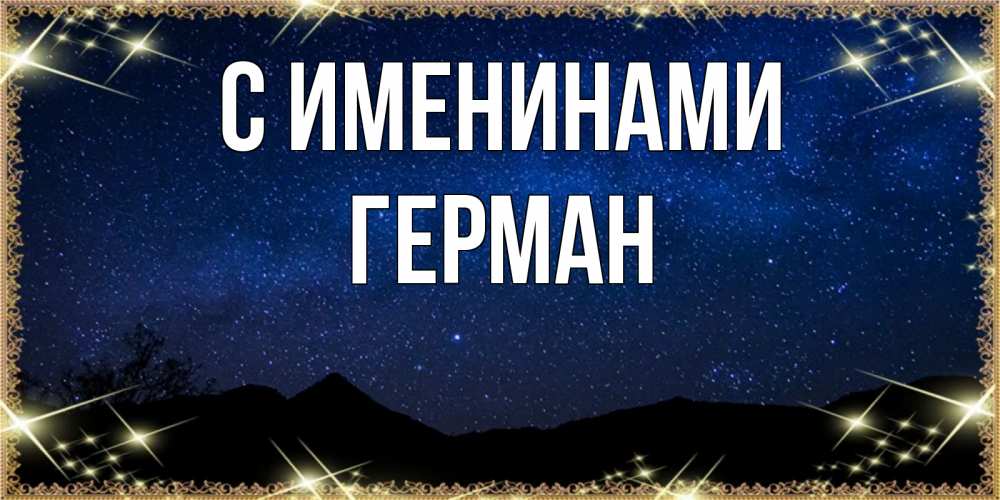 Открытка С именинами Герман. небо на фоне гор. млечный путь