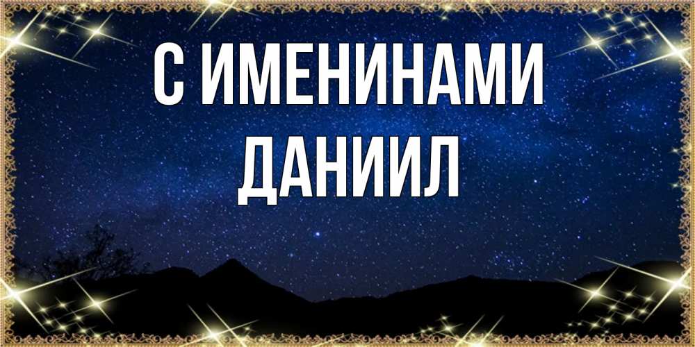 Открытка С именинами Даниил. небо на фоне гор. млечный путь