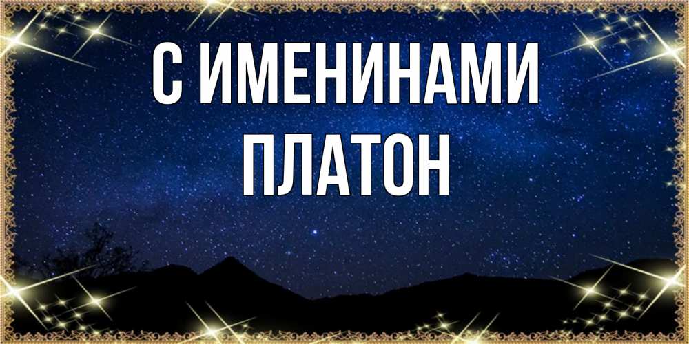 Открытка С именинами Платон. небо на фоне гор. млечный путь