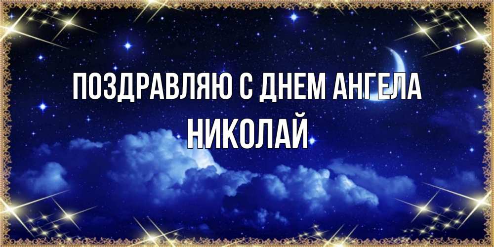 Открытка Поздравляю с днем Ангела Николай. месяц и небо желают хорошей ночи. хорошо выспаться и удачной ночи