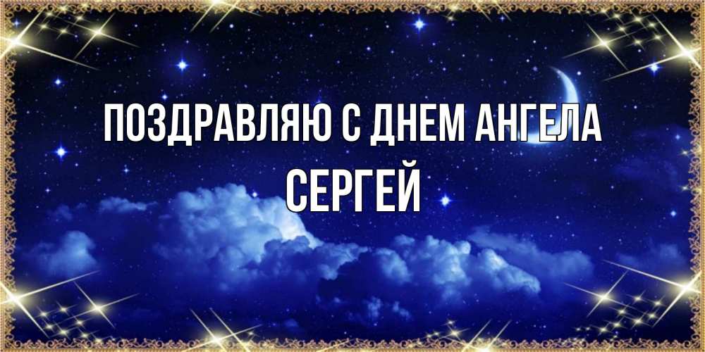 Открытка Поздравляю с днем Ангела Сергей. месяц и небо желают хорошей ночи. хорошо выспаться и удачной ночи