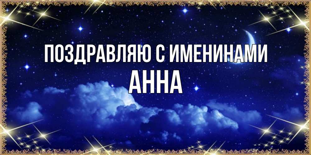 Открытка Поздравляю с именинами Анна. месяц и небо желают хорошей ночи. хорошо выспаться и удачной ночи