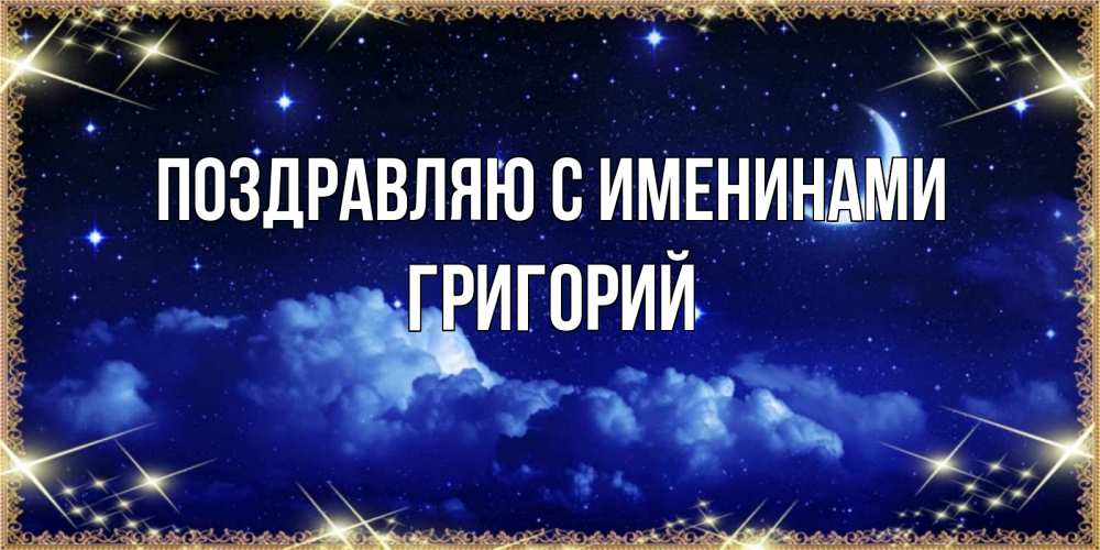 Открытка Поздравляю с именинами Григорий. месяц и небо желают хорошей ночи. хорошо выспаться и удачной ночи