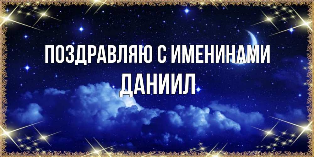 Открытка Поздравляю с именинами Даниил. месяц и небо желают хорошей ночи. хорошо выспаться и удачной ночи