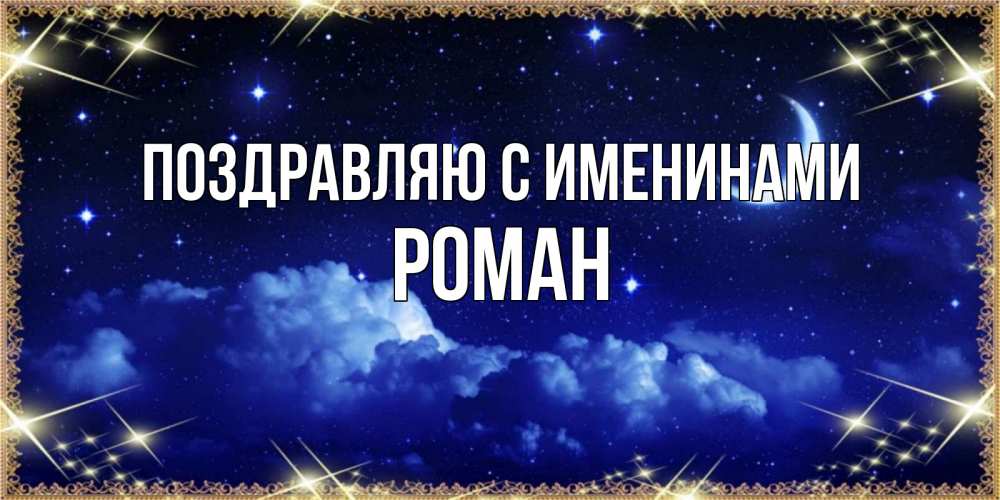 Открытка Поздравляю с именинами Роман. месяц и небо желают хорошей ночи. хорошо выспаться и удачной ночи