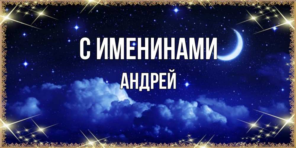 Открытка С именинами Андрей. месяц и небо желают хорошей ночи. хорошо выспаться и удачной ночи