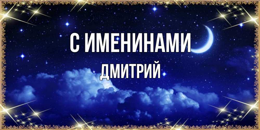 Открытка С именинами Дмитрий. месяц и небо желают хорошей ночи. хорошо выспаться и удачной ночи