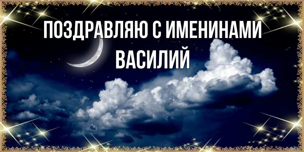 Открытка Поздравляю с именинами Василий. облако и месяц. спи на мягкой облачной перине