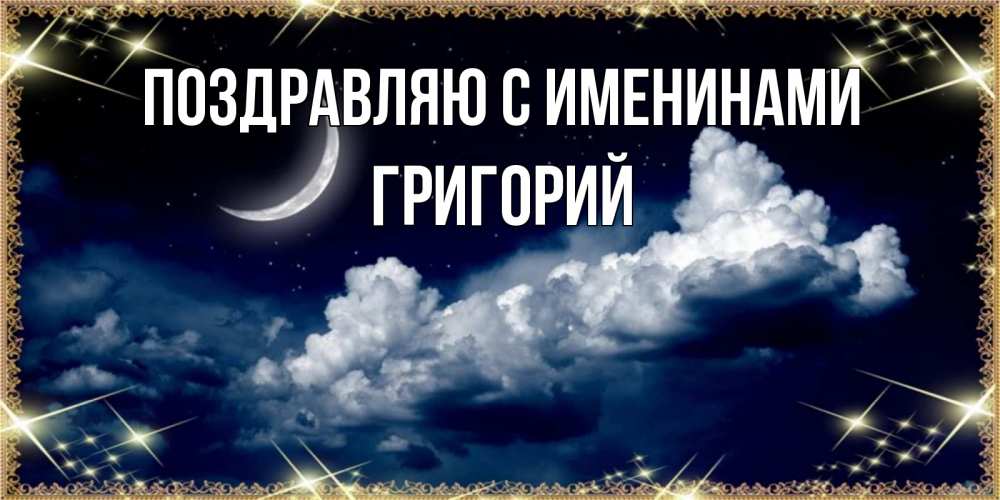 Открытка Поздравляю с именинами Григорий. облако и месяц. спи на мягкой облачной перине