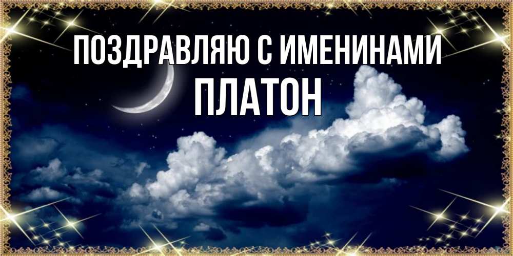 Открытка Поздравляю с именинами Платон. облако и месяц. спи на мягкой облачной перине