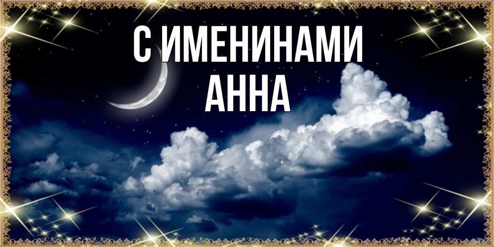 Открытка С именинами Анна. облако и месяц. спи на мягкой облачной перине