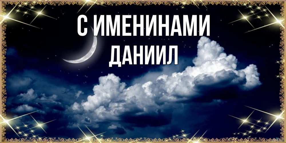 Открытка С именинами Даниил. облако и месяц. спи на мягкой облачной перине