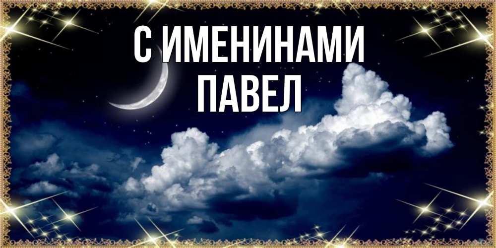 Открытка С именинами Павел. облако и месяц. спи на мягкой облачной перине