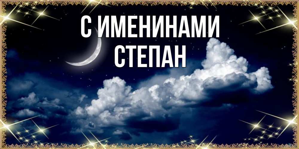Открытка С именинами Степан. облако и месяц. спи на мягкой облачной перине