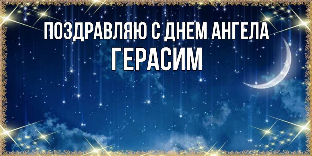 Открытка Поздравляю с днем Ангела Герасим. желаем хороших снов и яркого звездопада. звездопад и месяц на открытках ко сну