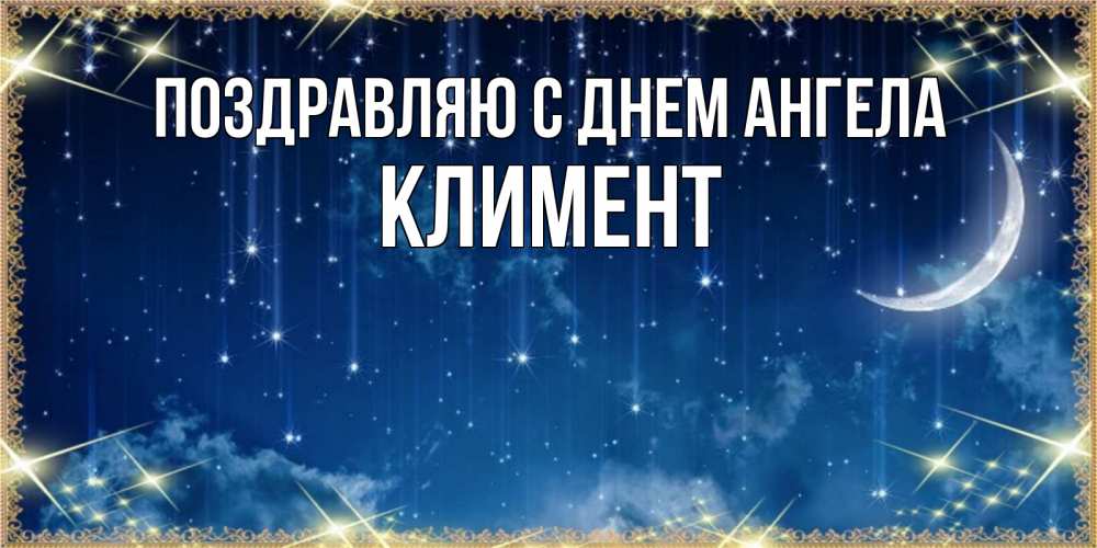 Открытка Поздравляю с днем Ангела Климент. желаем хороших снов и яркого звездопада. звездопад и месяц на открытках ко сну