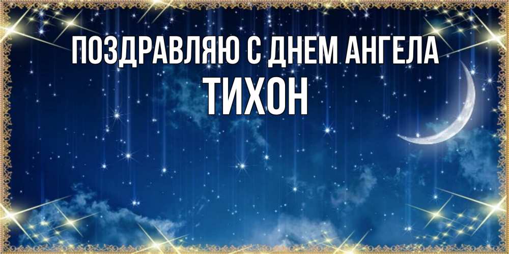 Открытка Поздравляю с днем Ангела Тихон. желаем хороших снов и яркого звездопада. звездопад и месяц на открытках ко сну