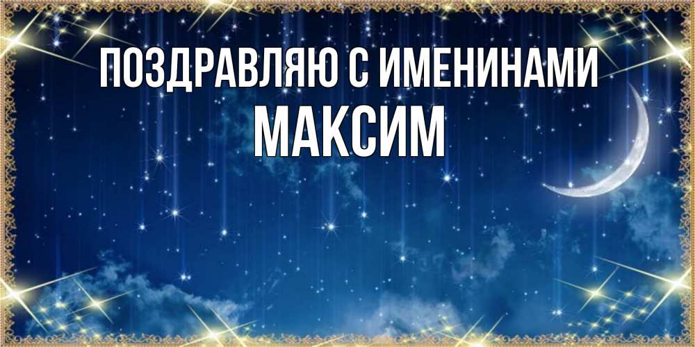 Открытка Поздравляю с именинами Максим. желаем хороших снов и яркого звездопада. звездопад и месяц на открытках ко сну