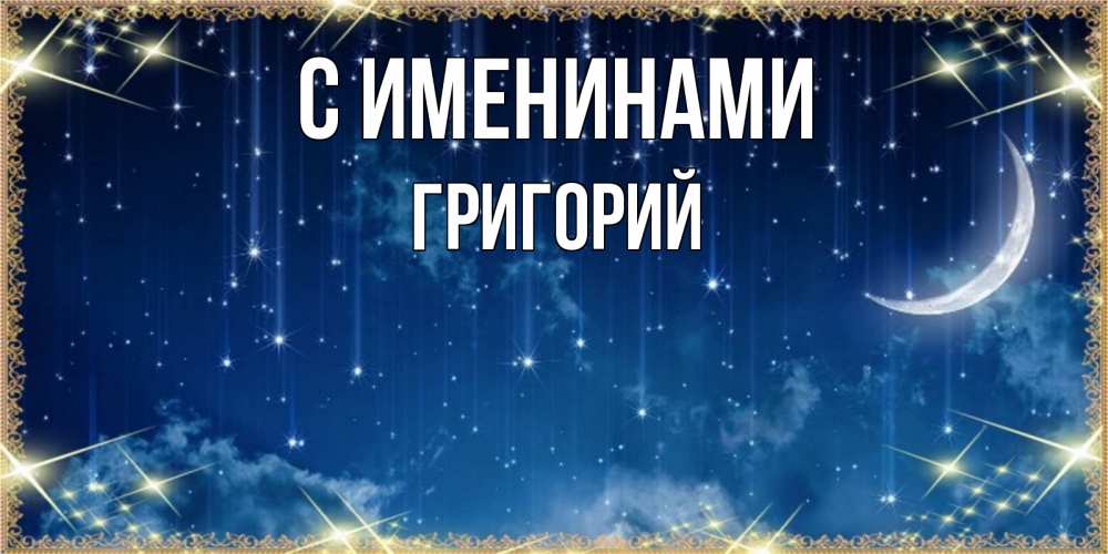 Открытка С именинами Григорий. желаем хороших снов и яркого звездопада. звездопад и месяц на открытках ко сну