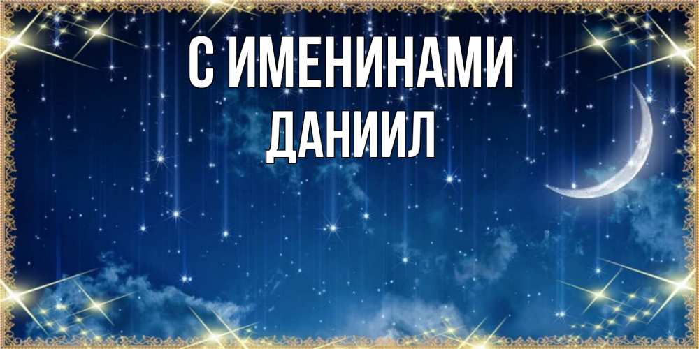 Открытка С именинами Даниил. желаем хороших снов и яркого звездопада. звездопад и месяц на открытках ко сну