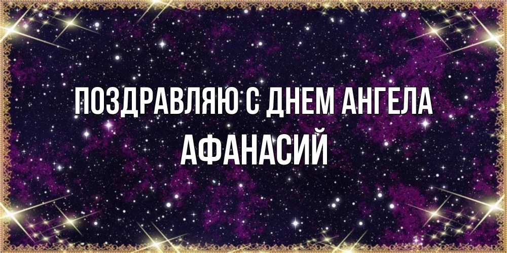 Открытка Поздравляю с днем Ангела Афанасий. фиолетовая туманность. хорошего сна