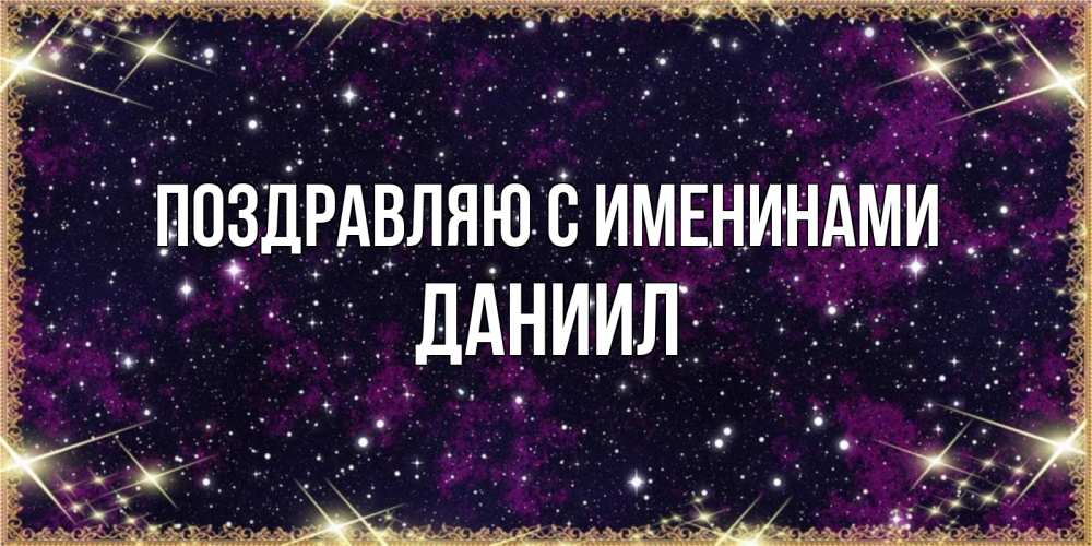 Открытка Поздравляю с именинами Даниил. фиолетовая туманность. хорошего сна