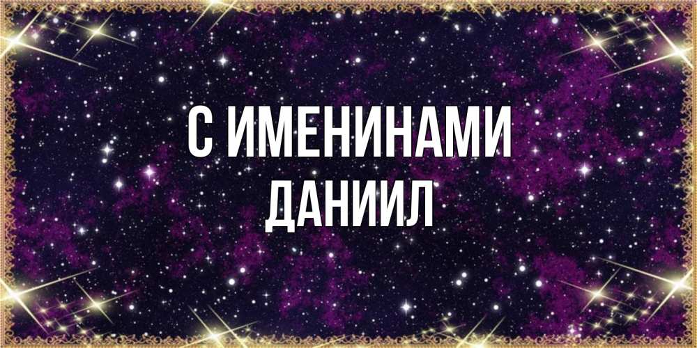 Открытка С именинами Даниил. фиолетовая туманность. хорошего сна