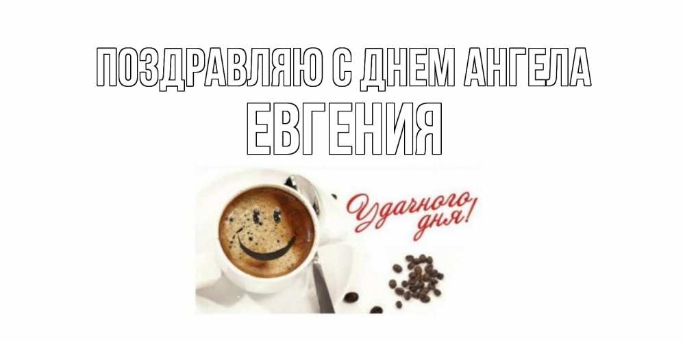 Открытка Поздравляю с днем Ангела Евгения. удачного дня с кофе. кофе