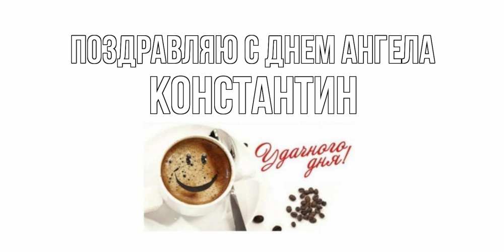 Открытка Поздравляю с днем Ангела Константин. удачного дня с кофе. кофе