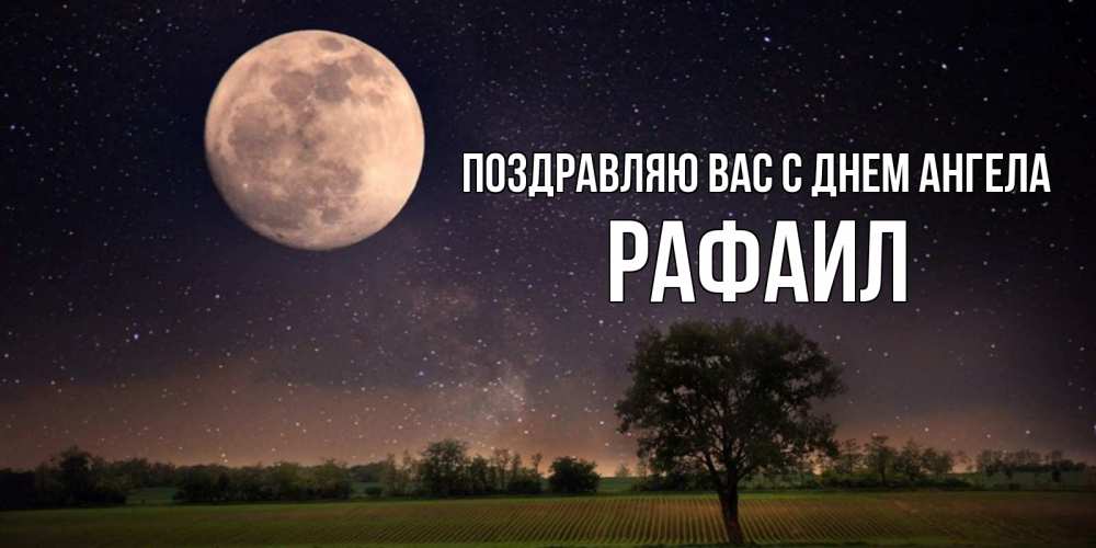 Открытка Поздравляю Вас с днем Ангела Рафаил. луна и дерево ночью. ночные открытки с луной