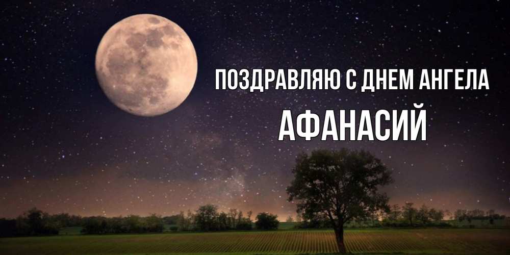 Открытка Поздравляю с днем Ангела Афанасий. луна и дерево ночью. ночные открытки с луной