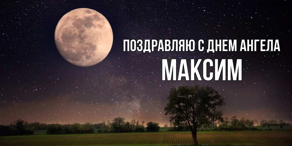 Открытка Поздравляю с днем Ангела Максим. луна и дерево ночью. ночные открытки с луной