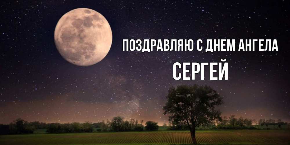 Открытка Поздравляю с днем Ангела Сергей. луна и дерево ночью. ночные открытки с луной
