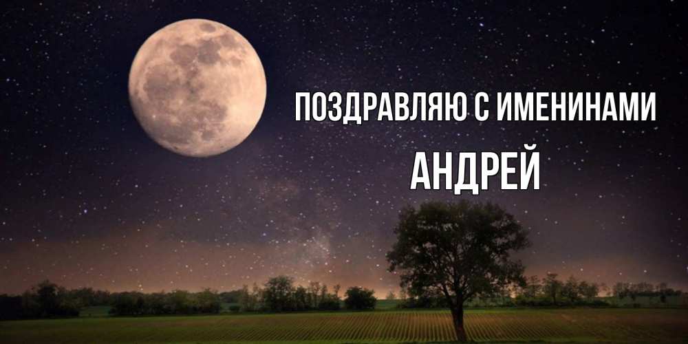 Открытка Поздравляю с именинами Андрей. луна и дерево ночью. ночные открытки с луной