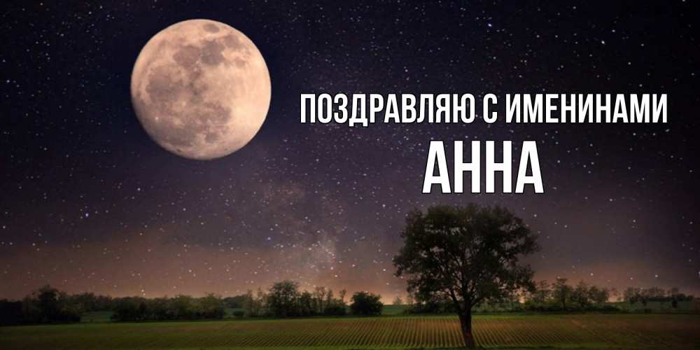 Открытка Поздравляю с именинами Анна. луна и дерево ночью. ночные открытки с луной