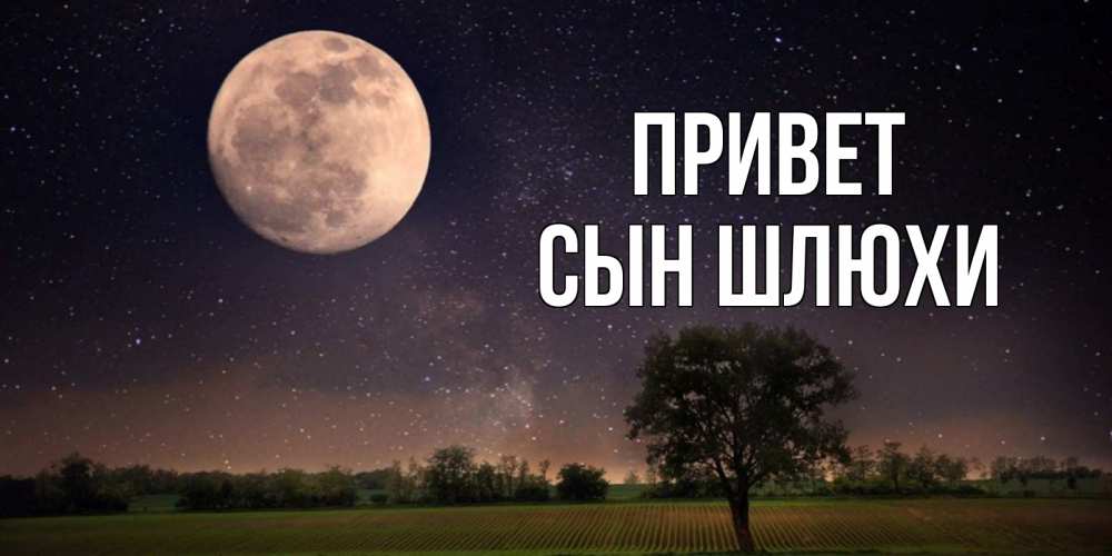Открытка Привет Сын шлюхи. луна и дерево ночью. ночные открытки с луной