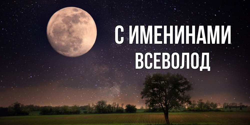 Открытка С именинами Всеволод. луна и дерево ночью. ночные открытки с луной