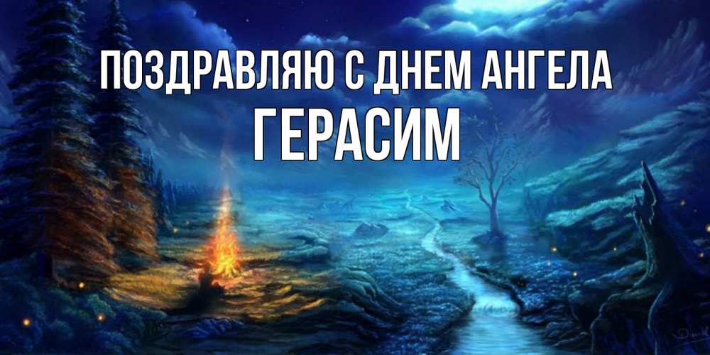 Открытка Поздравляю с днем Ангела Герасим. ночной пейзаж. спокойной ночи красивая картинка с подписью
