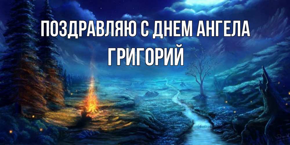 Открытка Поздравляю с днем Ангела Григорий. ночной пейзаж. спокойной ночи красивая картинка с подписью