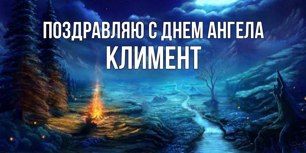 Открытка Поздравляю с днем Ангела Климент. ночной пейзаж. спокойной ночи красивая картинка с подписью