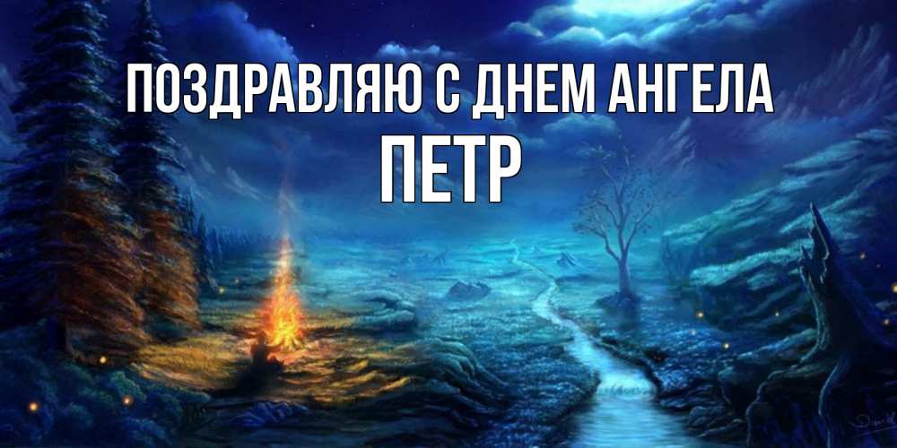 Открытка Поздравляю с днем Ангела Петр. ночной пейзаж. спокойной ночи красивая картинка с подписью