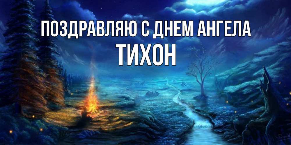 Открытка Поздравляю с днем Ангела Тихон. ночной пейзаж. спокойной ночи красивая картинка с подписью