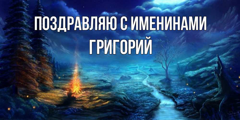 Открытка Поздравляю с именинами Григорий. ночной пейзаж. спокойной ночи красивая картинка с подписью