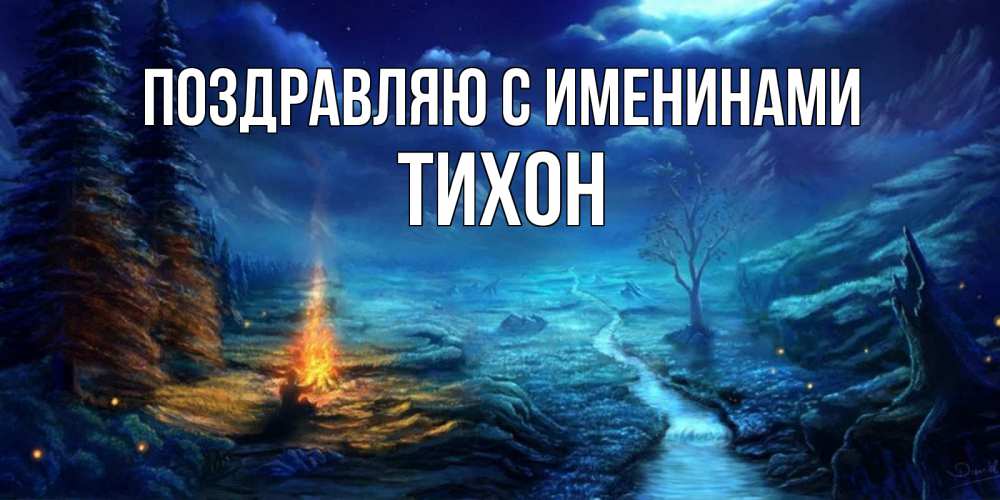 Открытка Поздравляю с именинами Тихон. ночной пейзаж. спокойной ночи красивая картинка с подписью