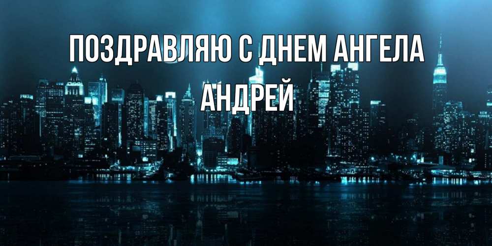 Открытка Поздравляю с днем Ангела Андрей. ночной город и луна. городской пейзаж