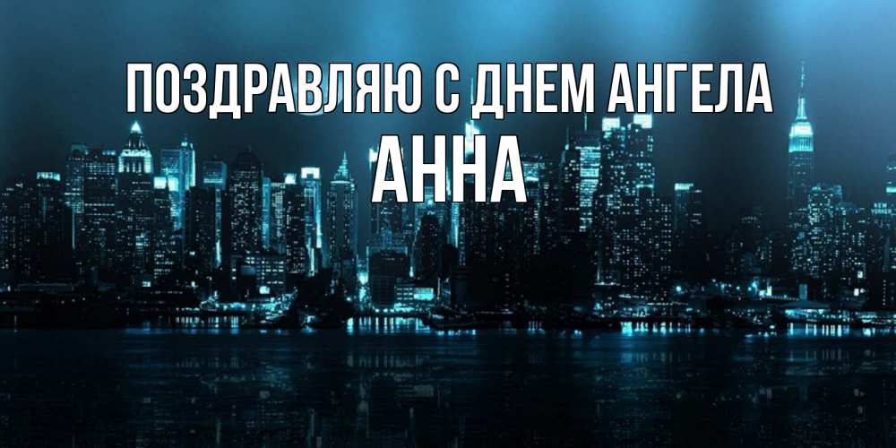 Открытка Поздравляю с днем Ангела Анна. ночной город и луна. городской пейзаж