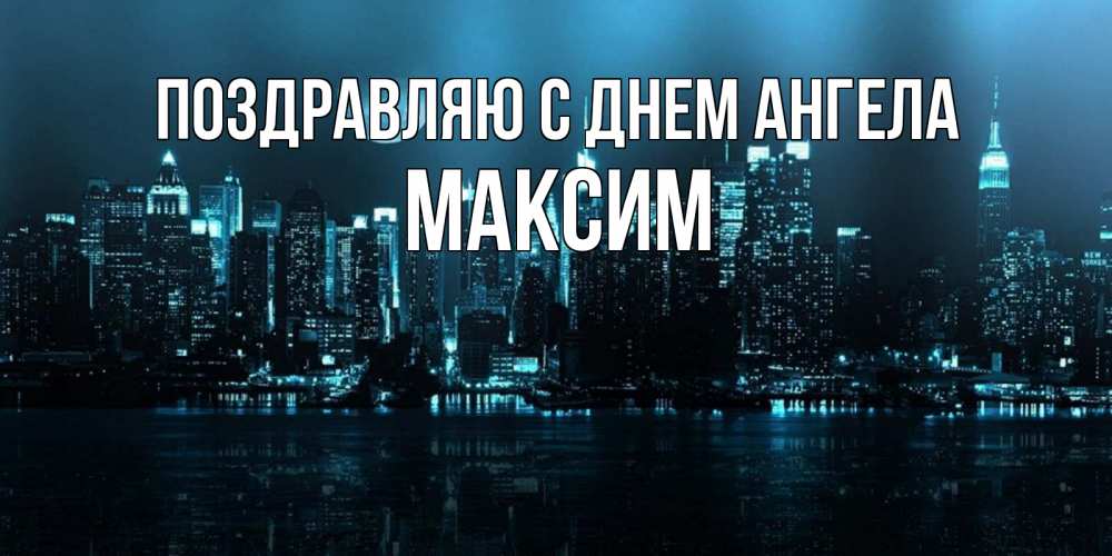Открытка Поздравляю с днем Ангела Максим. ночной город и луна. городской пейзаж