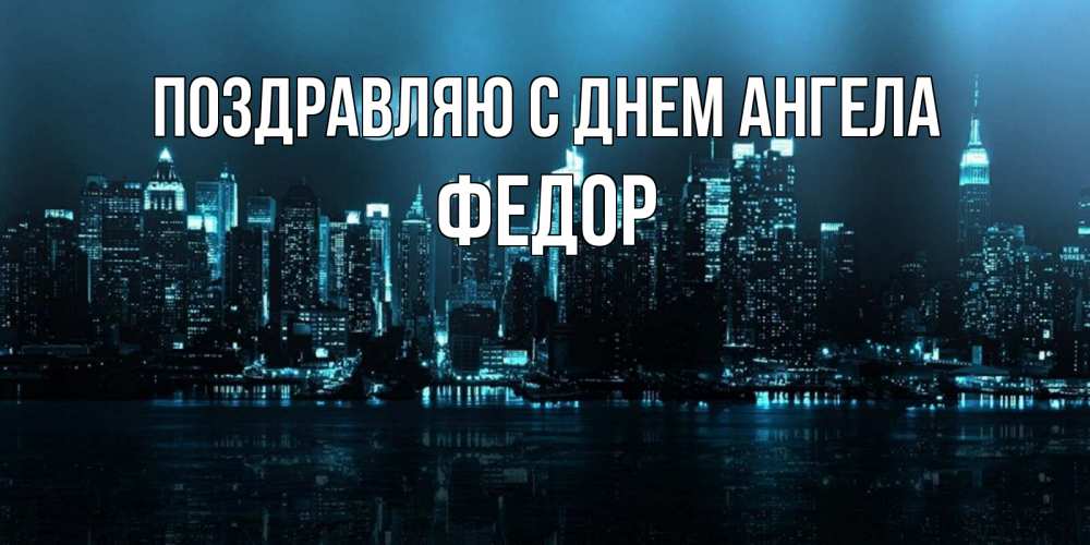 Открытка Поздравляю с днем Ангела Федор. ночной город и луна. городской пейзаж