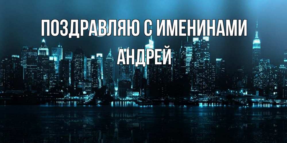 Открытка Поздравляю с именинами Андрей. ночной город и луна. городской пейзаж